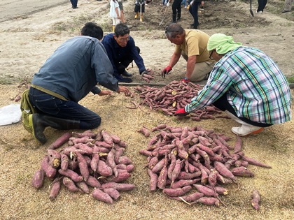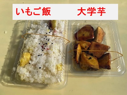 今回もボランティアの方が地元米で作った、美味しいイモご飯と大学芋を配布 |