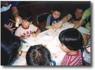 本年はカロム大会会場横にカロム工房を設け、ステンシルを趣味に活動されている方の協力により、自分だけのストライカー「オリジナル・マイ・ストライカー」を参加者に作っていただきました。