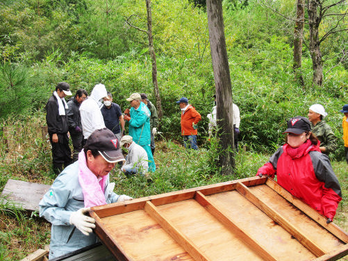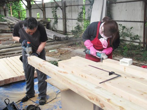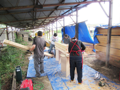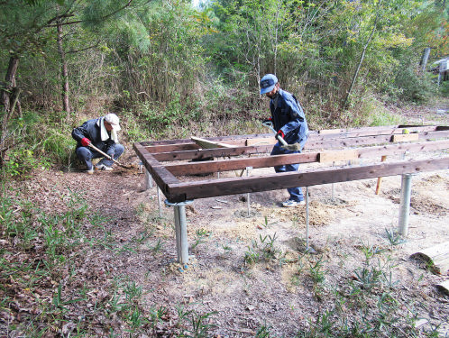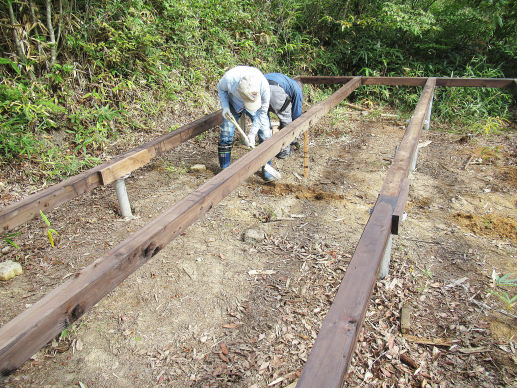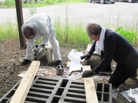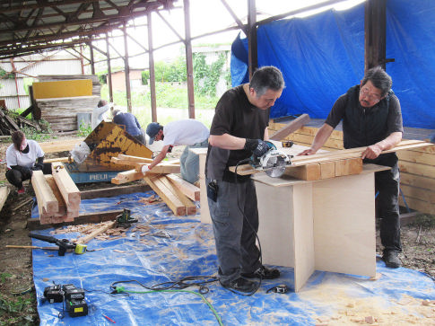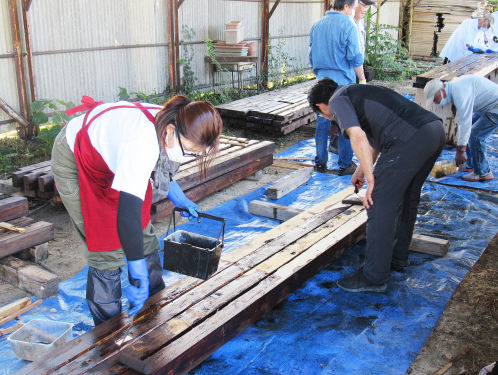 40周年記念事業 木材搬入 防腐剤塗装作業