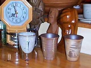 店に並んでいる信楽焼のコーヒーカップ