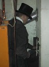 煙突掃除屋さんが玄関に来ています。ドイツでは「カーミン・ケラー」と呼ばれています。