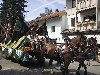 花いっぱいに飾られたフロートは、町の教会の大きな模型を乗せて