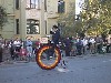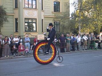 このパレードの先頭は、昔の自転車に乗った先導の人が