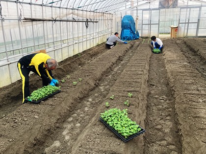 | 隣の畝に太郎株を移植(165株→今後、次郎株を増やしハウス内へ移植) | |