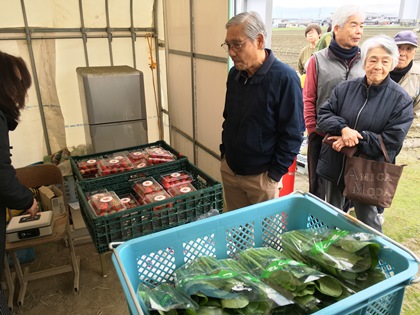 | 2月15日(土) 10時の販売開始に8名が 待っておられました(1人3パックに制限させて いただきましたが、10分程で55パックが完売) |