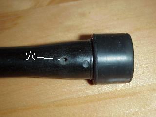 炭化した部分をほじったので穴が大きくなってしまいました。^^;) この穴からシリンダーヘッドにスパークしていたようです。プラグコードの寿命って50000km位なんですかね。