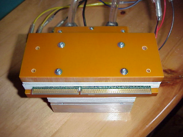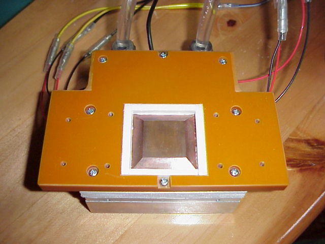 FH10025Aとカバーはシリコンのシーリング材を薄く塗ってシールします。この水枕であれば4cm角のペルチェが最大4枚まで取り付けられます。
