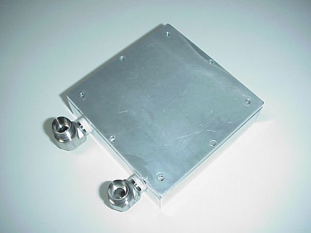 水枕はアルファのFH10025Aをベースに製作しました。特に気を配った点は水流がよどむことなくFH10025全体の熱を効率良く奪ってくれるようW字形状に水路を確保したことと、水漏れを防止するためスウェッジロックで配管したことです。