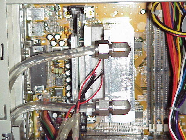 Mother Board BH6 CPU Intel Celeron300A(SL32A) 98361167 Malaysia Memory SEC BT−GH 64MB HDD Quantum SE2.1A Video Card Glaphics Blaster RIVATNT 16MB AGP ペルチェ素子 千石電商 80W×2 電圧12V印加 ペルチェ電源 ダイワ SS-330W MAX30A ポンプ イワキ MD-6ZA 水枕取り付け時の流量 約2.7L/min 水タンク 飲料水用ポリタンク12L 水量10L